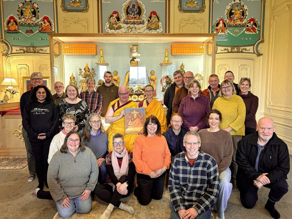We have the good fortune to be receiving 8 foot Buddha and his lotus, as well as other new statues from the Kadampa Art Studio, similar to the beautiful and inspiring shrine and statues at KMC Leeds, below. This will bring very powerful blessings for our Centre and the local area, but we need help to make this happen.